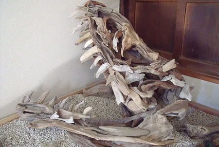 流木を集めて制作(ティラノサウルス)