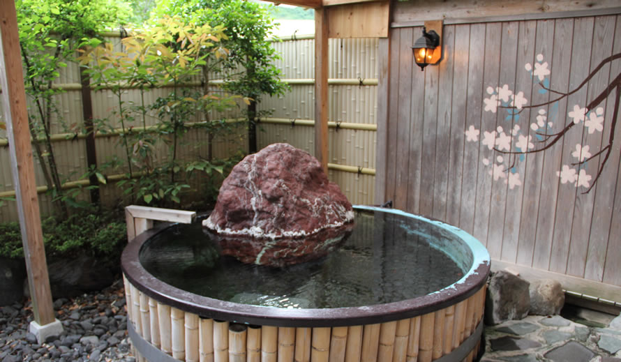 | 貸切露天風呂 | 「桜の湯」「たちばなの湯」 桜の湯には桜の葉を塩漬けにする「大樽」と同じ大きさのわっぱを使用しています。 |