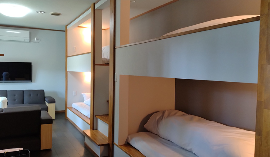 | 部屋タイプ | 川側:固定2段ベッド2+ソファーベッド2 |