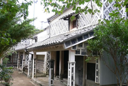明治中期に建てられた呉服商家。わずか数代の間に財を成した大地主の建物は、贅沢な木造建築です。なまこ壁造りのたたずまいの中は、太い柱や梁、贅沢な素材や細工を施してあります。