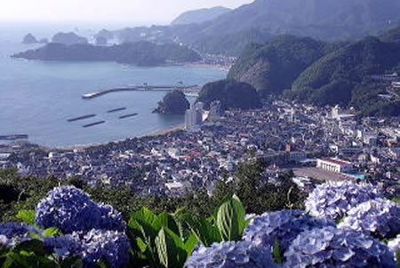 漆喰画で欄干を装飾した、ときわ大橋や当館のすぐ横に流れている那須川など松崎町全域が舞台となった「世界の中心で愛を叫ぶ」。ここはあじさいの丘です。