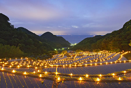 標高120~250mに広がる約370枚、4.2haの田んぼは、東日本では珍しい石積みの棚田。眼下に駿河湾を一望でき、晴れた日には富士山・南アルプスを望むことができる絶景の棚田です。